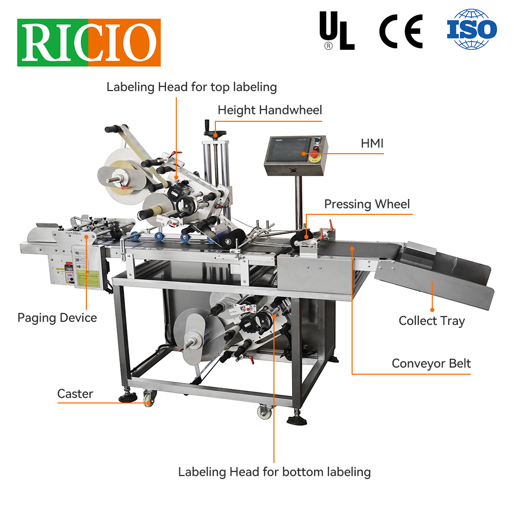 Top And Bottom Automatic Paging Labeling Machine can be used for a variety of materials, a variety of specifications, shapes of cards, plastic, paper products stacked automatically into a sheet after automatic labeling, such as plastic bags, paper, cartons, recharge cards, internet cards, IP cards, 200 phone cards, 300 phone cards and other items automatically sub-sheet, and then accurately affixed sticker. Anti-counterfeiting label, Bar Code label can be affixed. Sticker Precision is high, sticker film without bubbles; with product automatic identification function, according to different products automatically start different sticker head work.